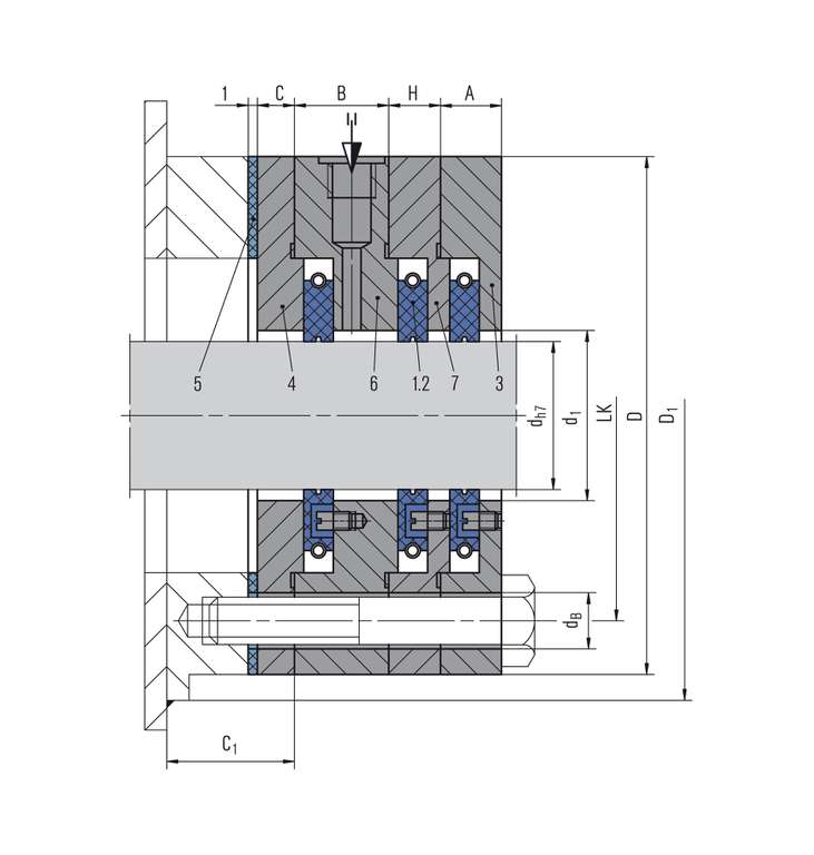 Operating temperature: t = -120 °C ... +500 °C (-184 °F … +932 °F) for carbon, max. 225 °C (437 °F) for PTFE compound, max. 300 °C (572 °F) with grease
